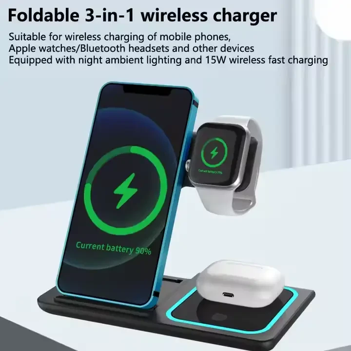 Vereinfachen Sie Ihr Ladeerlebnis mit unserem 3-in-1 Wireless Charger Faltbaren Ständer, speziell entwickelt für Apple- und Huawei-Geräte. Laden Sie Ihr iPhone, die Apple Watch und AirPods oder Huawei Smartphones gleichzeitig – mit schnellem kabellosen Laden. Das faltbare Design ist ideal für Zuhause, Büro oder unterwegs – kompakt, elegant und effizient.
